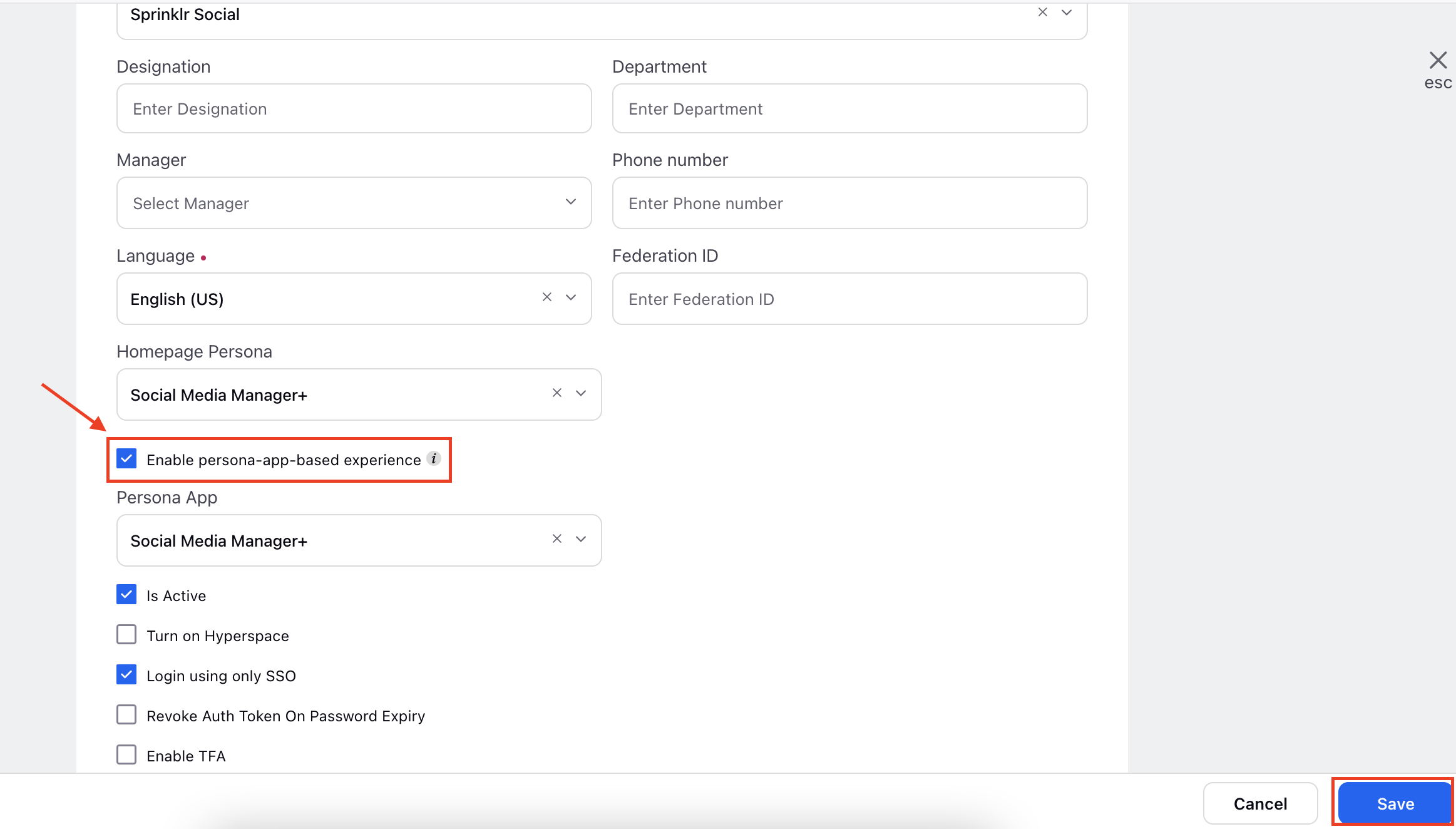 2. In the Edit section uncheck the 'Enable persona-app-based experience' checkbox.