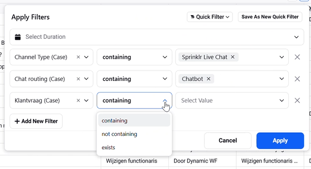 They want to be able to type in the word 'assets' in the filter and then find the shown case. But in the filter they can only use containing and then they only get results that are a exact match. E.g. 'the company has no assets'.